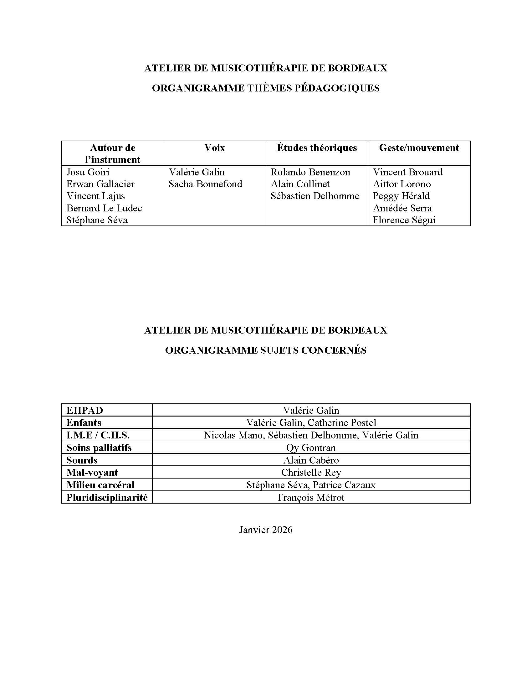 Ducourneau Gérard. (Responsable), musicothérapeute, auteur de « Introduction à la musicothérapie », Privat, 1977, 1982 ; « Musicothérapie, clinique, technique, formation », Privat, 1989 ; « Éléments de musicothérapie » Dunod 1997, troisième édition 2021. Fondateur de l’A.M.Bx et des Éditions du Non Verbal/A.M.Bx.